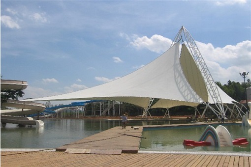 2.张拉式膜结构:膜曲面起到重要结构作用,可以创造简洁明快无柱空间。但张拉式膜结构受力计算复杂,制作安装较困难。适用大中型体育、文化、娛乐、商业设施。