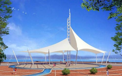 3、对内部的声音反射和对外部噪声的屏蔽两方面。声波在穿过织物时的衰减也是需要考虑的,通常单层膜的隔音性能仅在 10dB 左右。在膜内加装轻质、多孔的织物衬垫,可以有效地减弱声波反射并增加声波传播的衰减。但这样处理会影响到建筑物的采光和防火性能。另一种较为可行的方法是在膜结构顶棚上每隔一段距离悬挂一些标牌,以增加对声波的吸收,并改变顶棚的曲线造型从而改变反射方向。